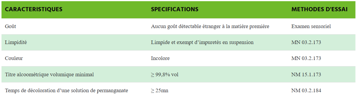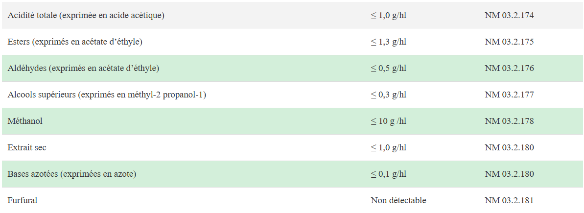 Valeurs maximales en éléments résiduels (à 100% volume d’alcool)