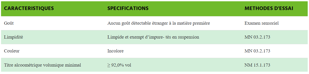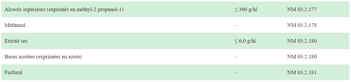 Valeurs maximales en éléments résiduels (à 100% volume d’alcool)